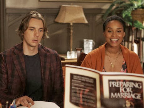 Crosby (Dax Shepard) and Jasmine (Joy Bryant) had a kid together and then were engaged. They get married and have a second child.